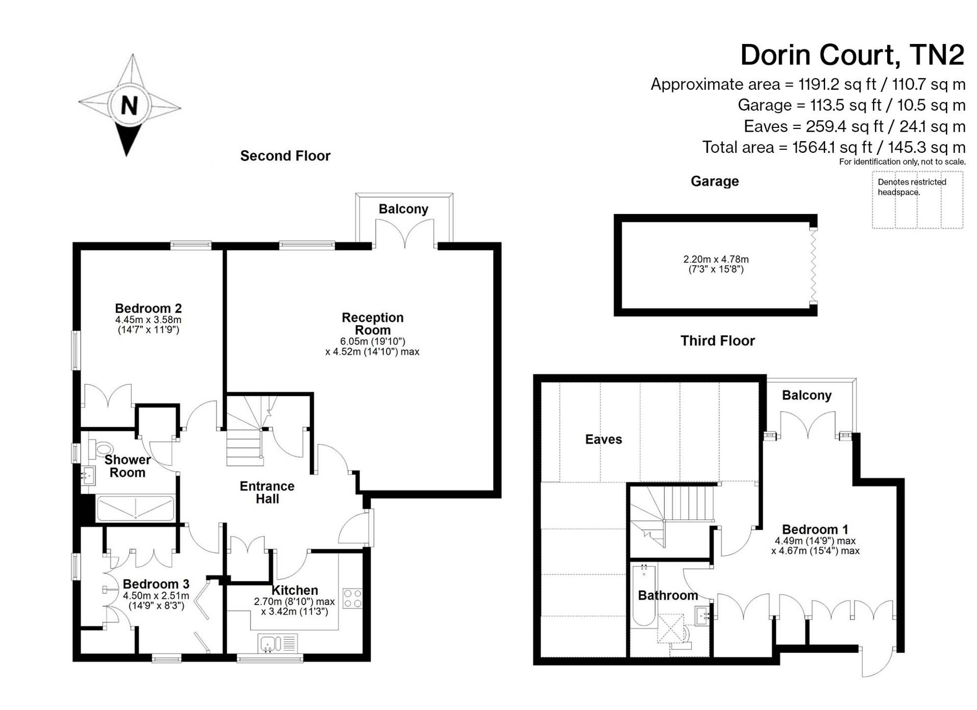 Upstairs, the master bedroom feels light, bright and spacious, with double doors opening to a small balcony with wonderful views and a wall of wardrobes ensures that storage is no issue. The en-suite bathroom has also been recently re-fitted and has a shower over the bath, a wash basin with storage beneath and a WC. Being on the top floor, this apartment also benefits from extensive eaves storage as denoted on the floorplan. This is especially useful for those downsizing from a larger property and the storage is easily accessed from a door on the landing by the bedroom entrance.