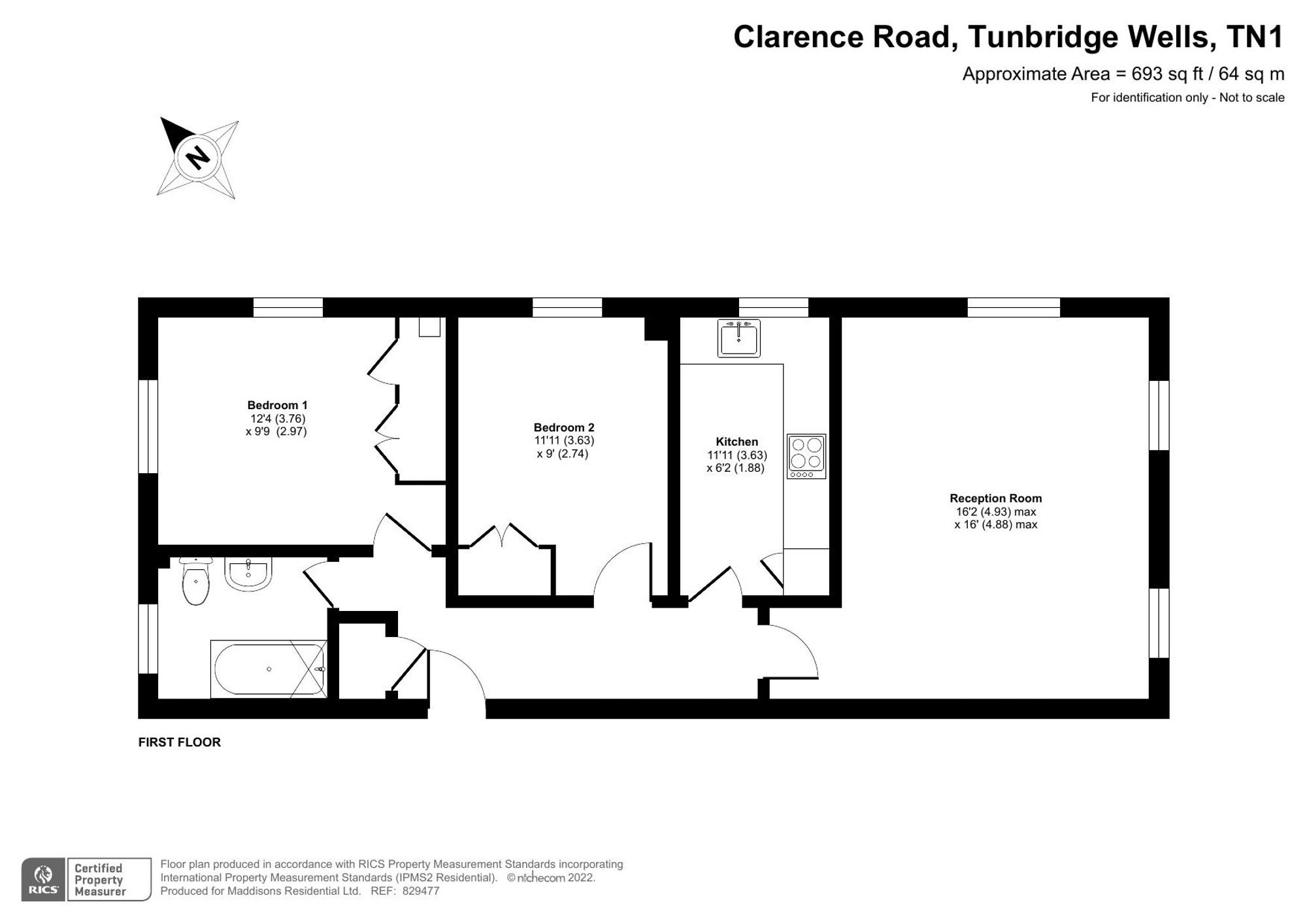 This exceptionally well‑presented first‑floor apartment offering two double bedrooms and allocated parking, is set within an attractive period building on a quiet no‑through road in the heart of Tunbridge Wells. The property was thoughtfully updated by the current owner, and is presented in excellent order throughout, including a re-fitted kitchen and a stylish, modern bathroom, making it ready for immediate occupation. A further benefit is an allocated parking space to the rear of the building: an increasingly valuable asset for such a central location.