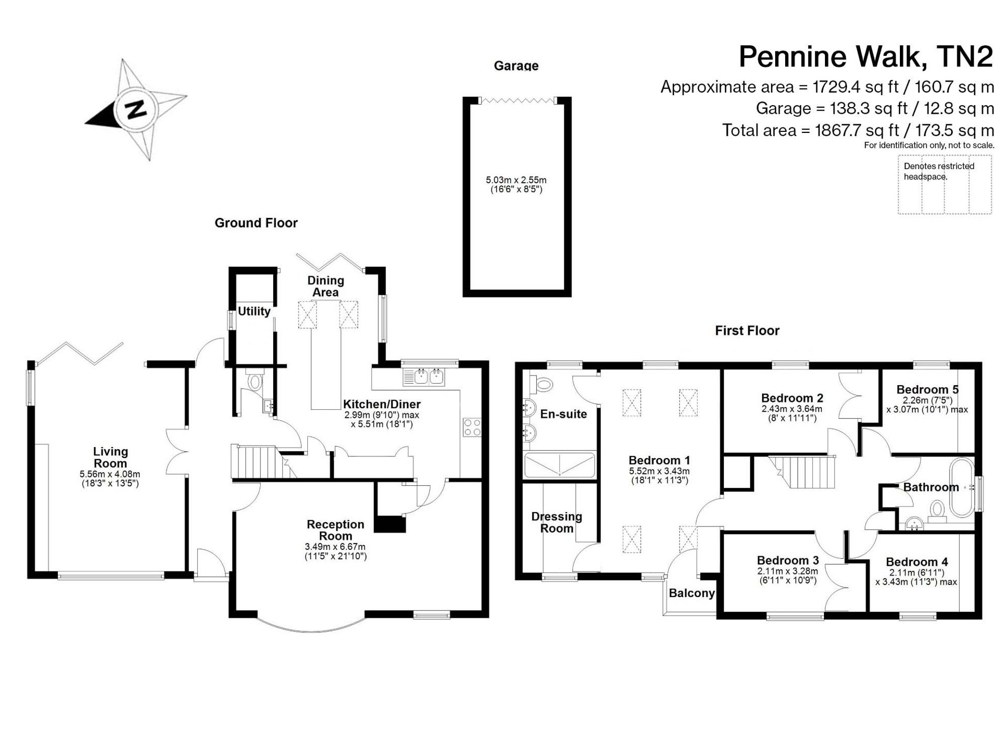 Outside, there are generous grounds to both the front and rear, all securely enclosed. To the rear, a large terrace runs the length of the house , with steps up to a lawned area and dedicated children’s play area. There is also a garage with parking for 1 vehicle, set just a few steps from the property.